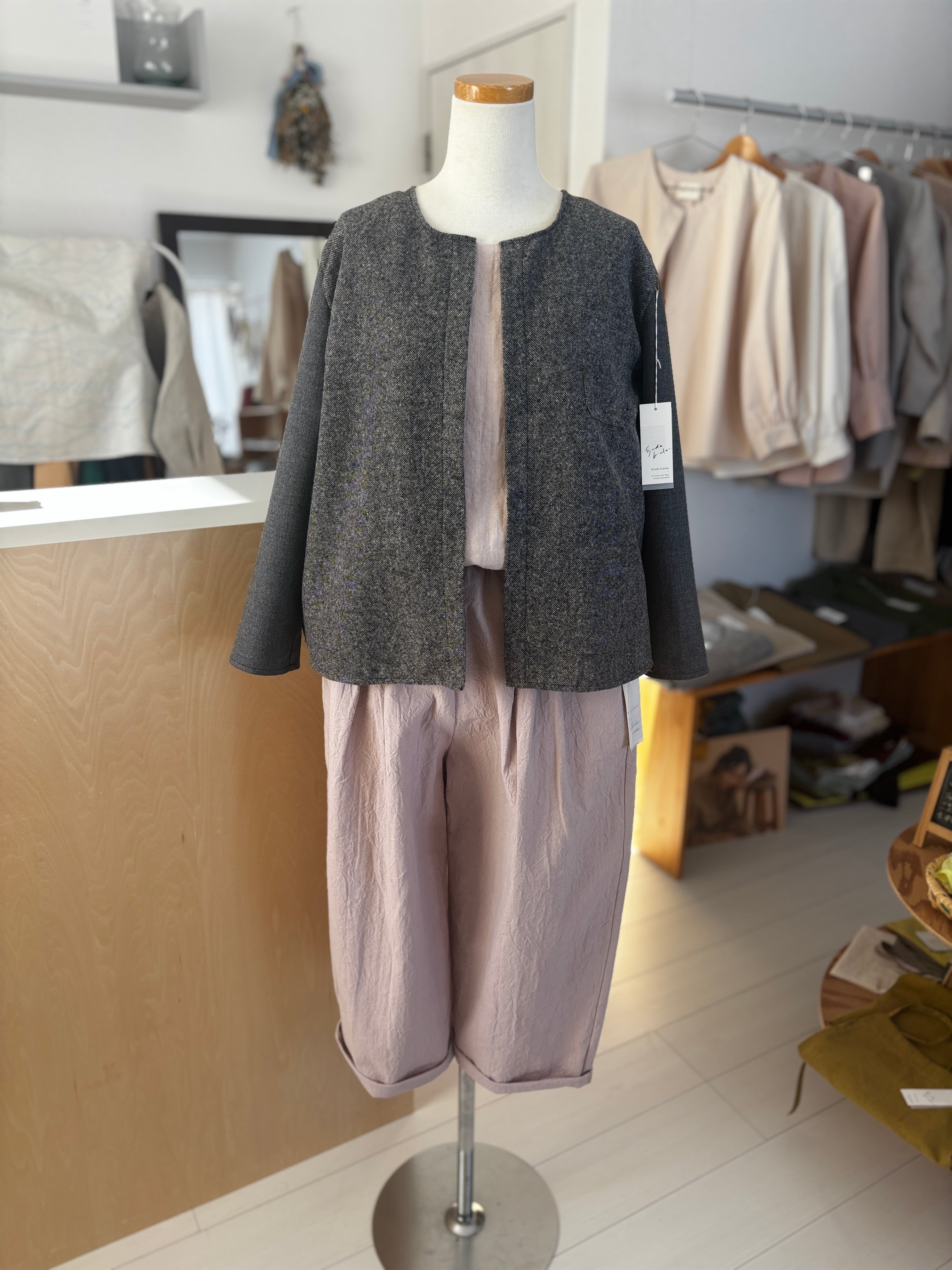 袖の素材を切り替えて二つのウール混素材シャツです。ニットカーディガンのように使える一品です。シャツとしてもパリッと使用でき、2wayで楽しめる限定品です。