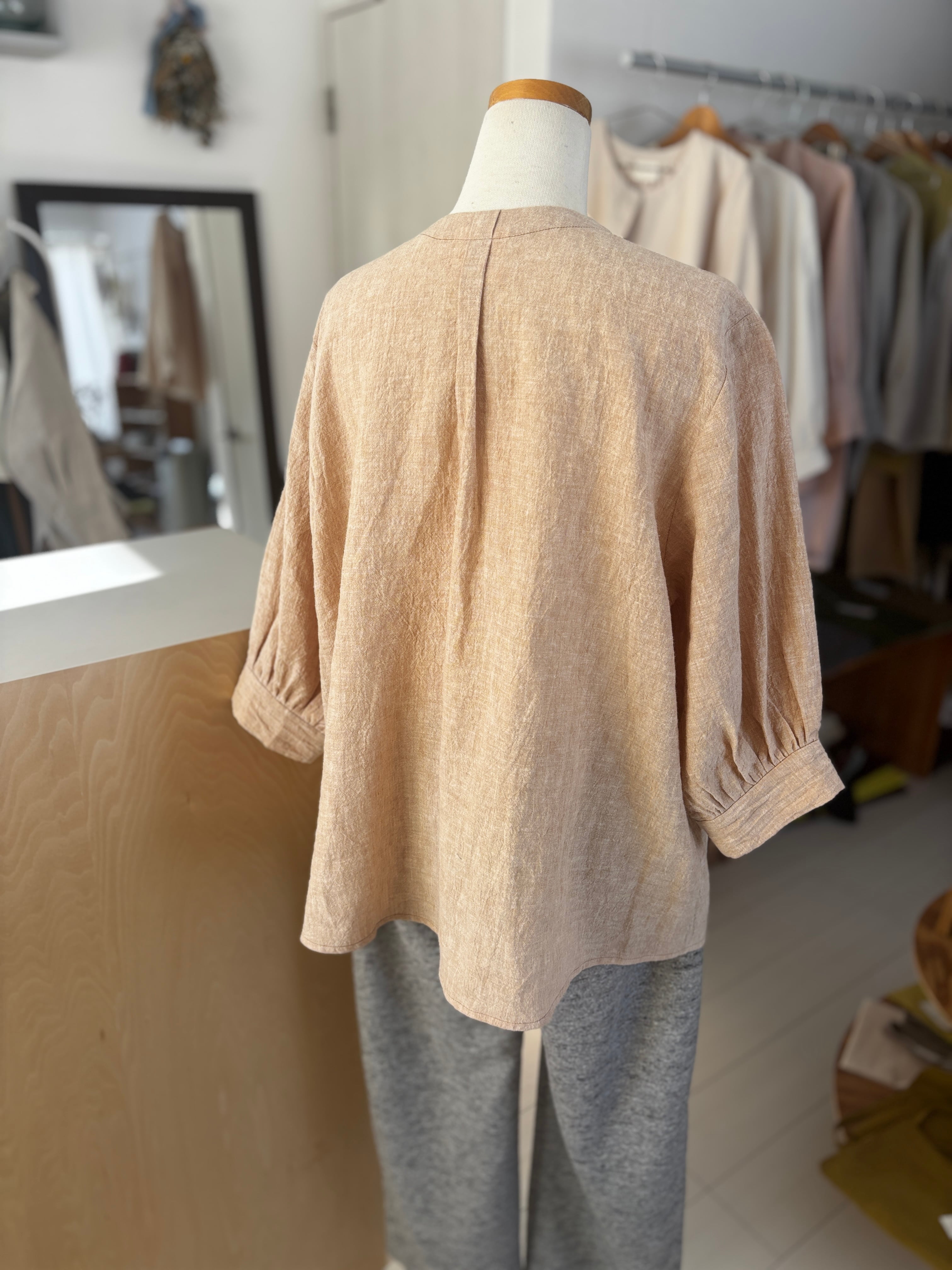 コットンリネンの柔らか軽いトップス。秋冬はハイカットのニットと合わせて重ね着で。夏は一枚でさらりと。一年中たのしめる、限定カラーの一品です。