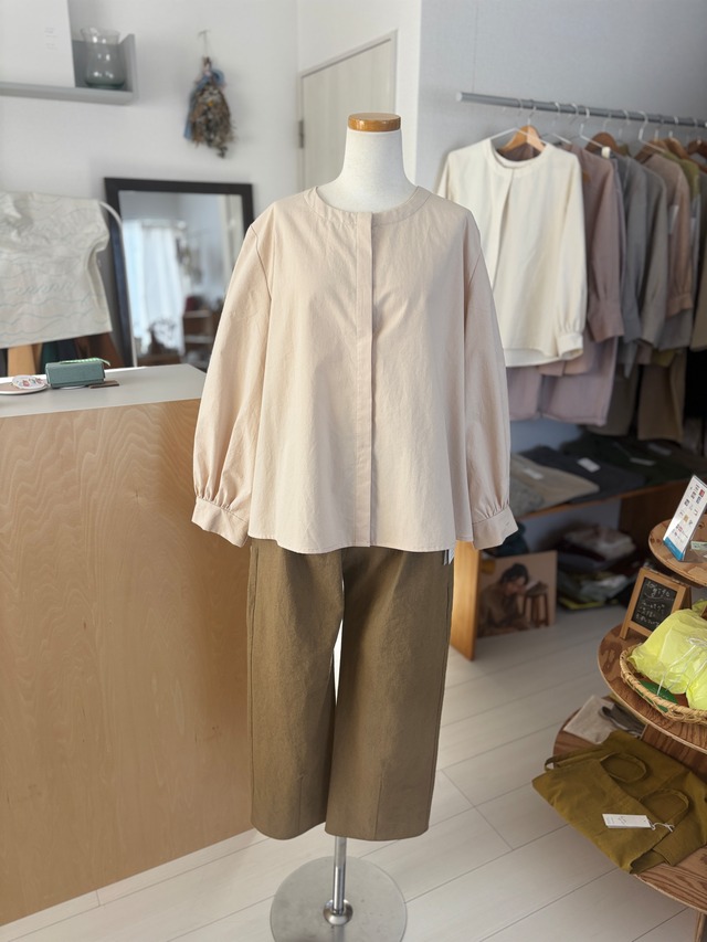ウール混なのであたたかく、一枚で存分にかわいいシャツ、ホワイトです。中にボタンが隠れてるので閉めた時はシンプルに、開けてきる時はカーディガンのように楽しめます。
