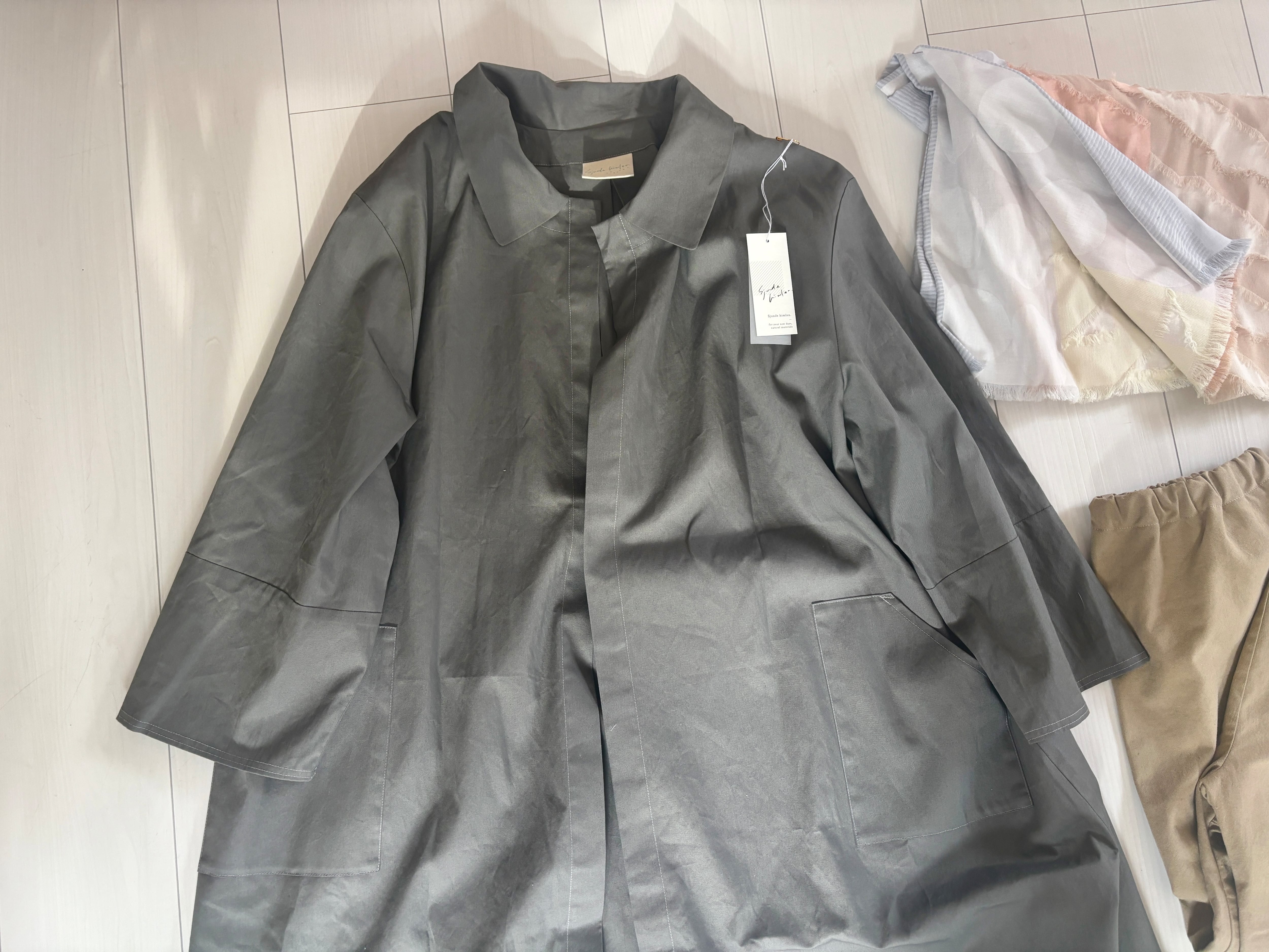 オーバーサイズ気味で可愛いアウター、重ね着でもたくさん使えるロングコート。そしてあたたかくすぐ使えるウール混ボトムス。特別にpolsテキスタイルストールもセット。合わせてコーディネートを楽しめます。ミニ巾着は限定プリント入りです。
