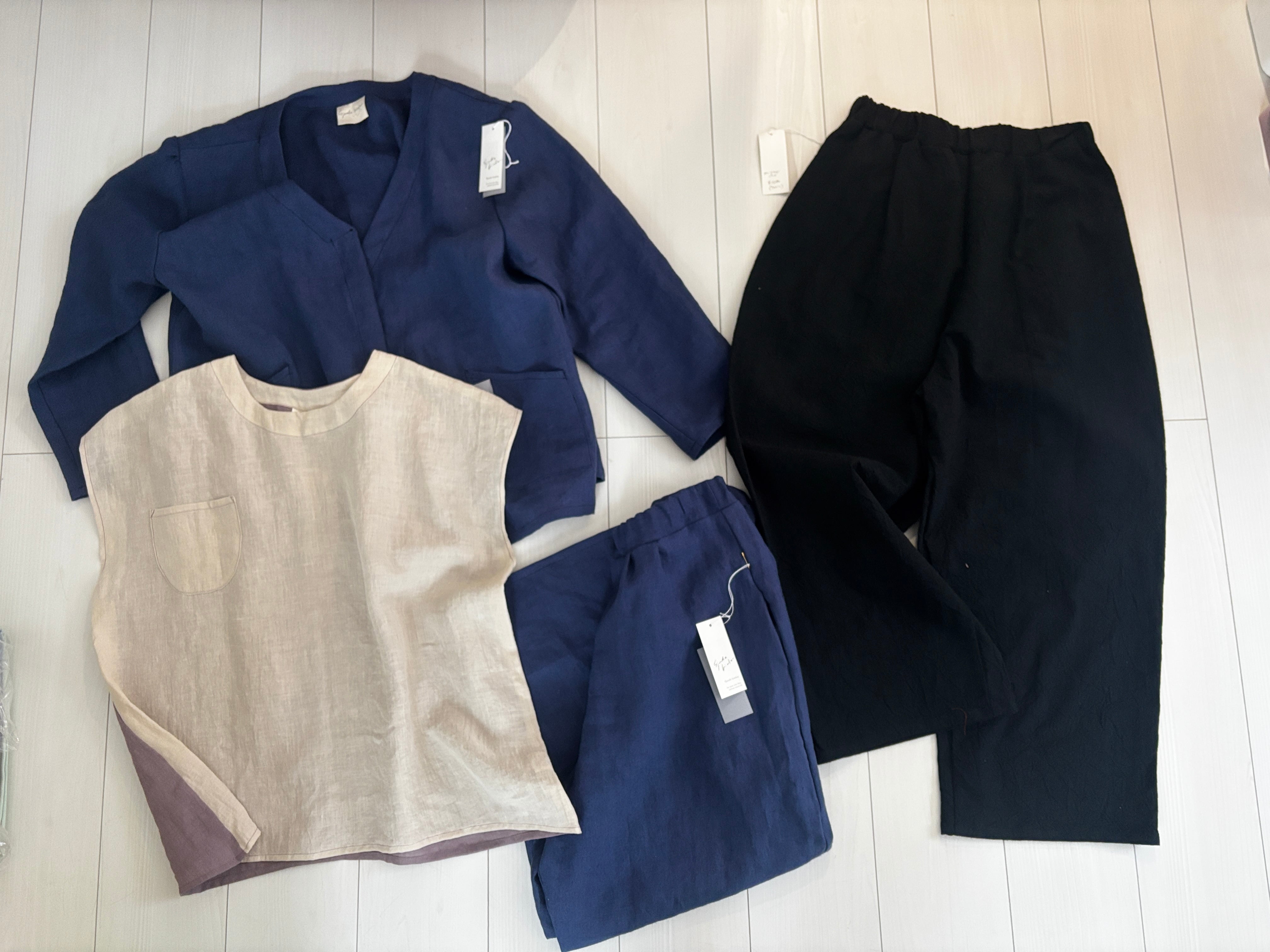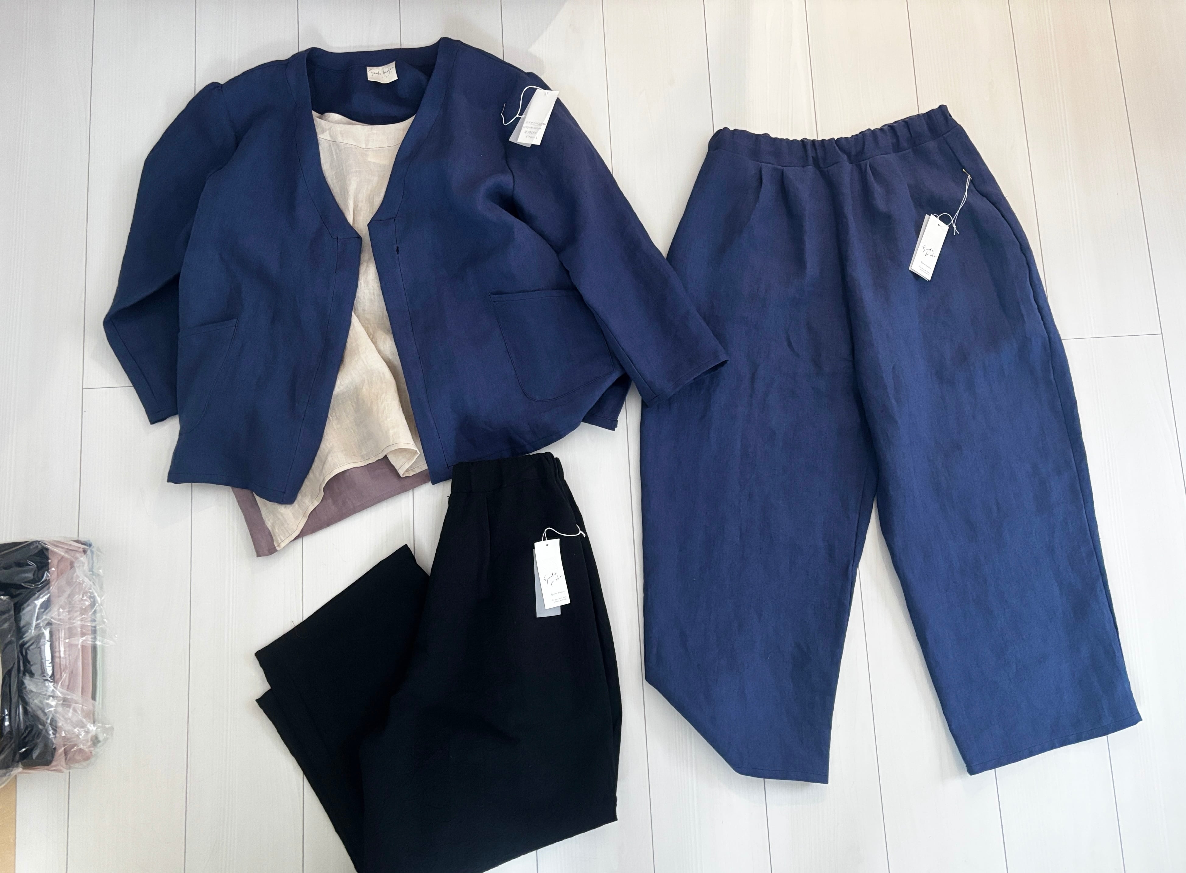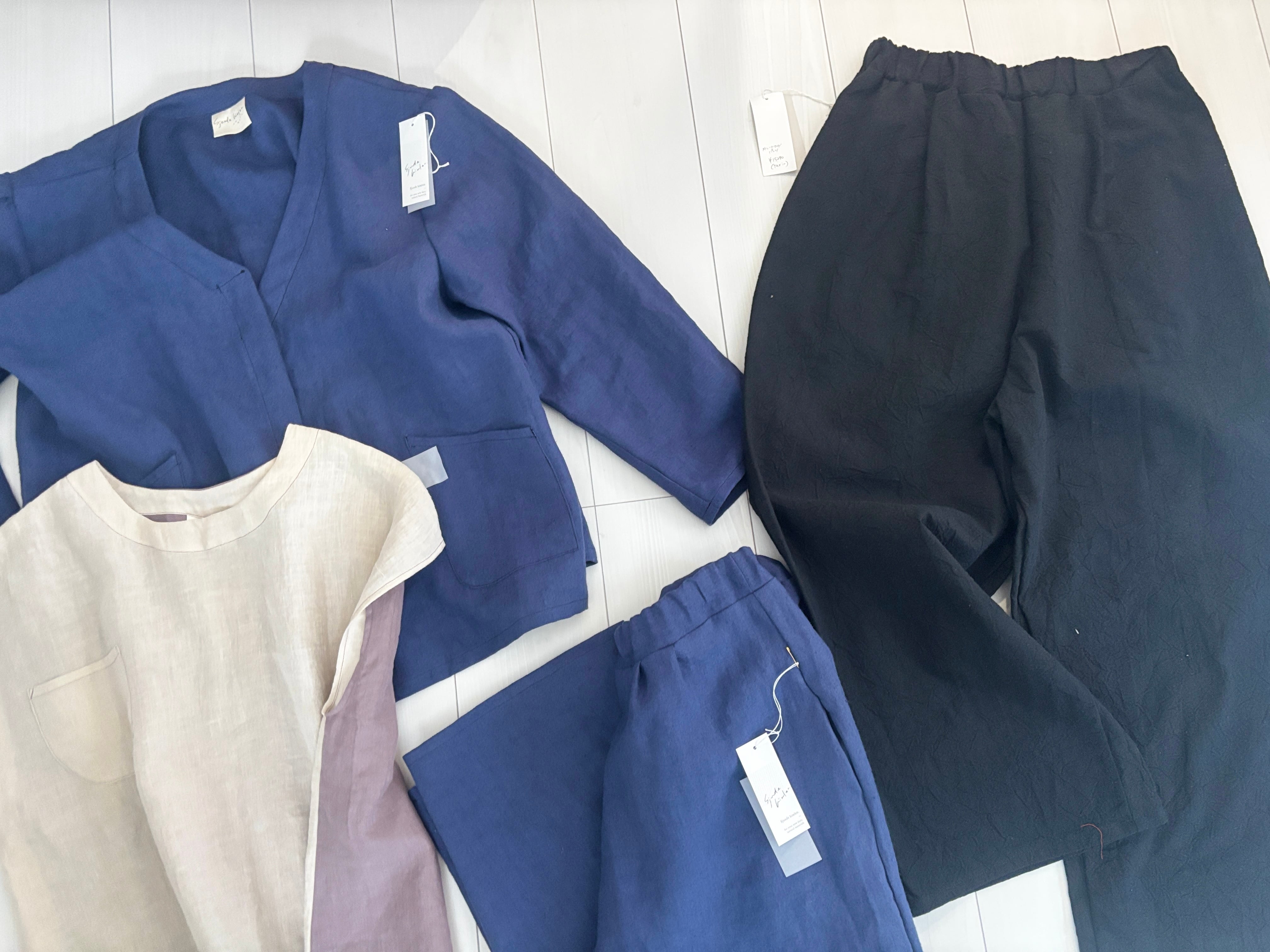 上質なリネンのセットアップ。薄手で重ね着にも、夏には一枚で楽しめるリネンのトップスのセット。コットンリネンのワイドボトムスもついてコーディネートが様々に楽しめる一品です。ミニ巾着は限定プリント入りです。