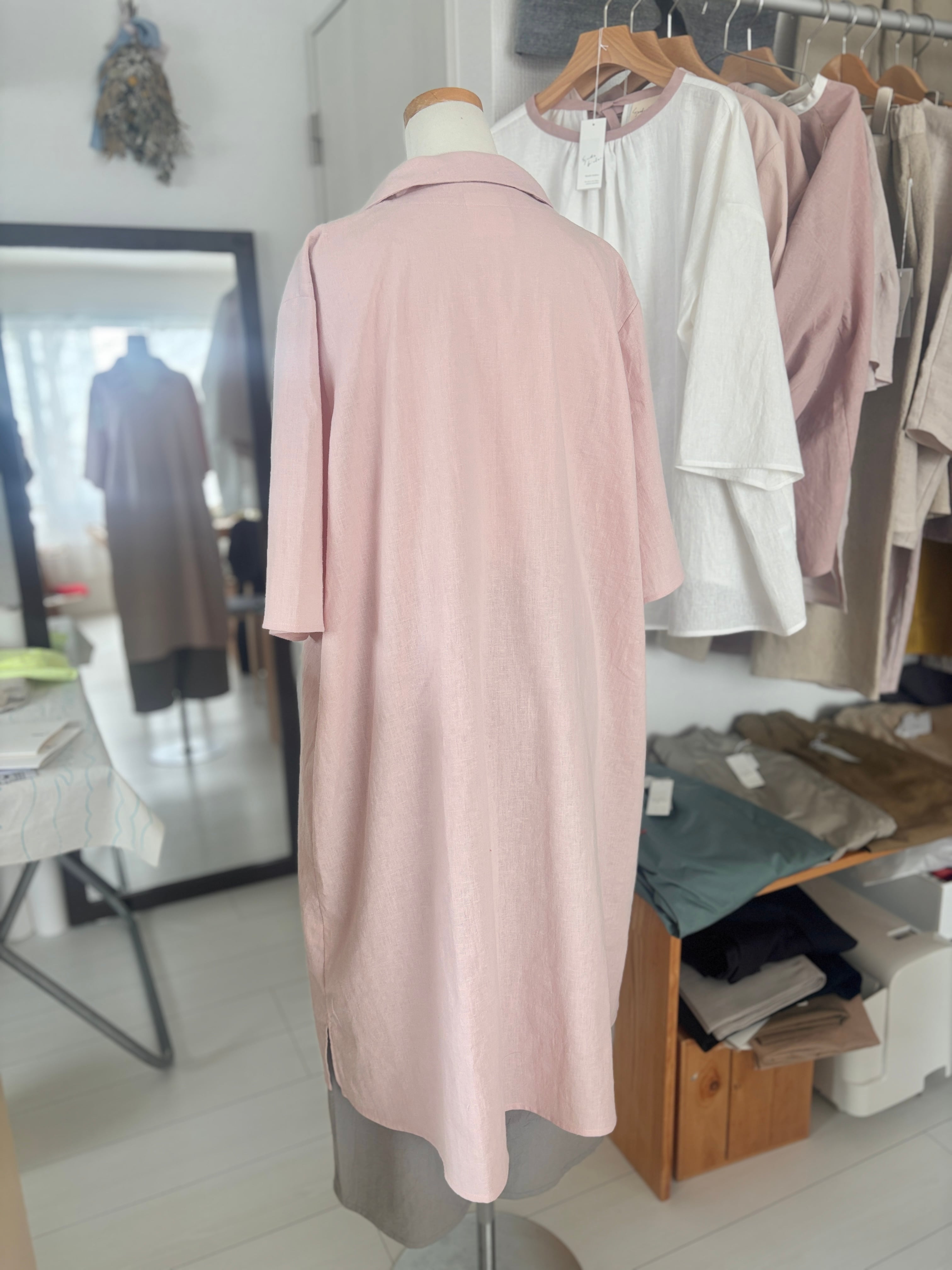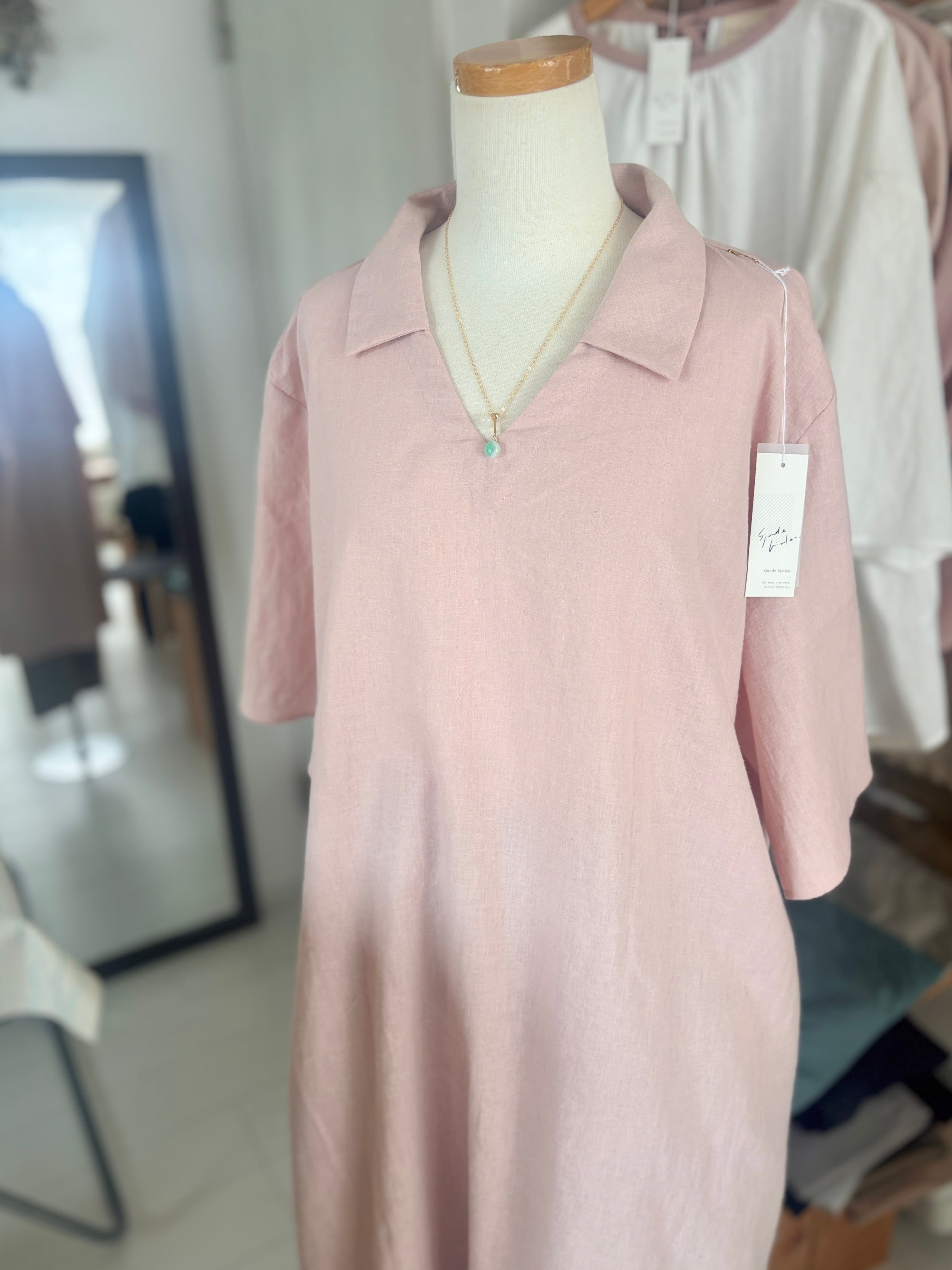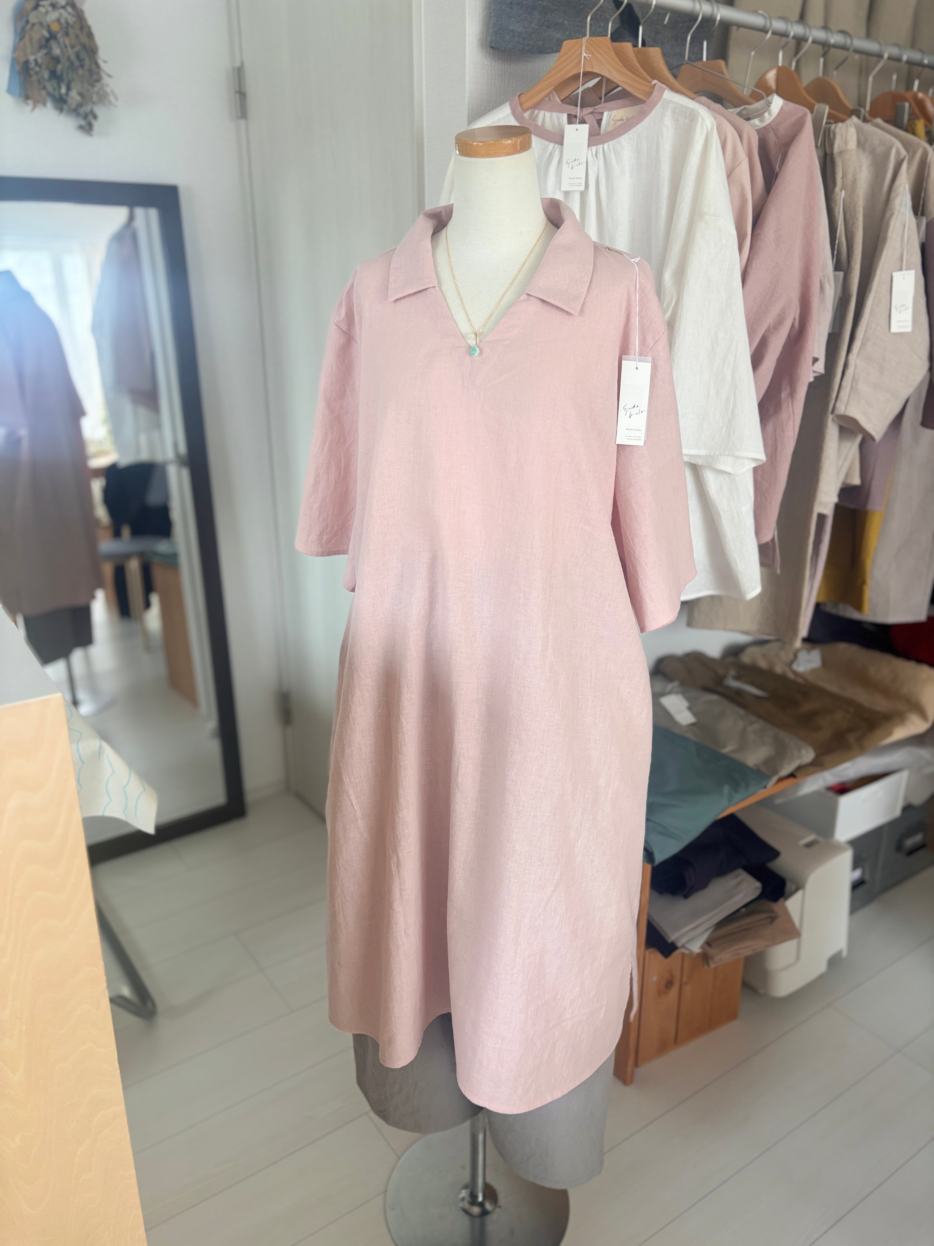 【即販売】襟付きロングワンピースライトピンク